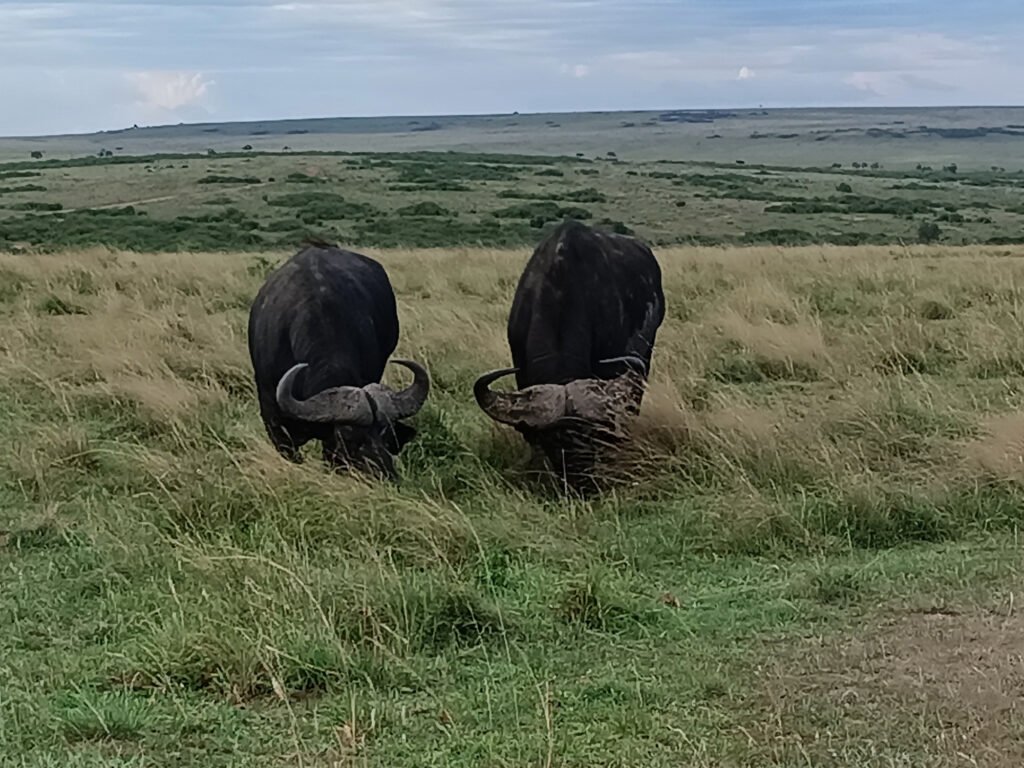 আমাদের তাঁবুর ধার থেকেই শুরু হয়ে গেছে বুনো জন্তুদের চরে বেড়ানোর ঘাসজমি, মাঝে একটা গাছের ডাল দিয়ে তৈরি সীমানা নির্দেশক বেড়া। তাঁবুতে ঢোকার সময়েই দেখলাম বুনো মোষ চরে বেড়াচ্ছে সামনে। শুনেছি, মাসাইরা সিংহের চাইতে বুনো মোষকে বেশি ভয় পায়, ওরা বলে, সিংহের সামনে পড়লে তবু প্রাণে বেঁচে ফেরা যায়, কিন্তু বুনো মোষের সামনে পড়লে সেই চান্স খুবই কম। দলছুট বুনো মোষের রাগী-রাগী মুখটা দেখে, সেই শোনা কথাটা মনে পড়ে গেল।